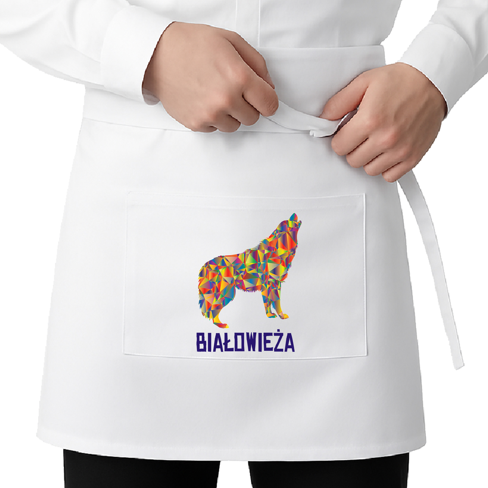 • Na środku zapaski znajduje się jedna prostokątna kieszeń