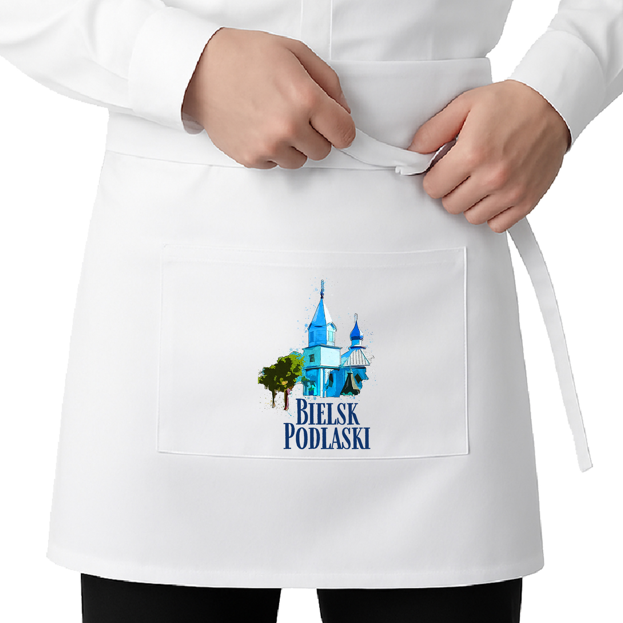 • Na środku zapaski znajduje się jedna prostokątna kieszeń